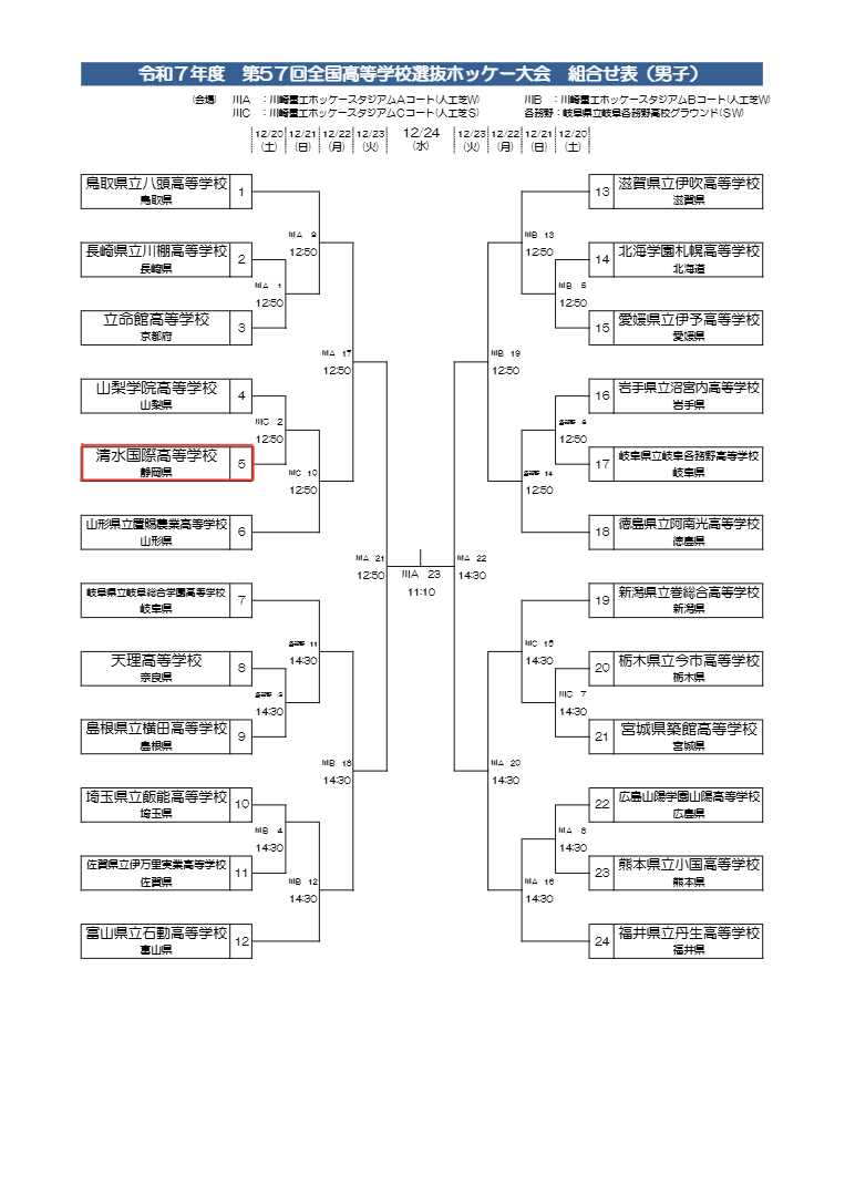 令和5年度 静岡県高等学校総合体育大会ホッケー競技組み合わせ 5/20.21